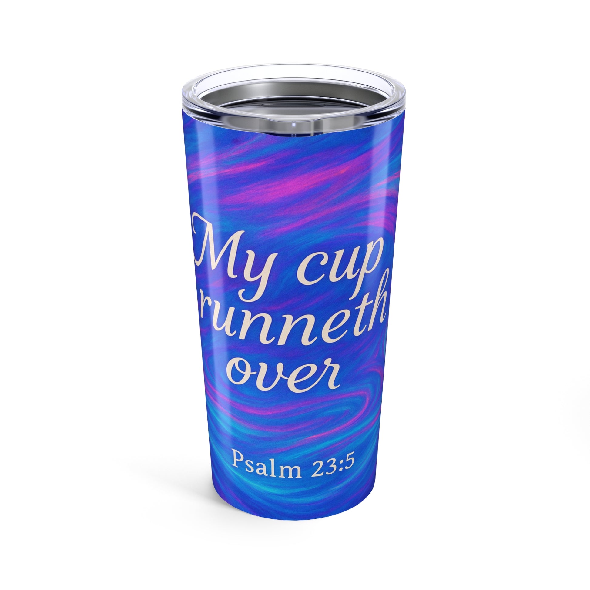 Bluish Swirls Tumbler - My Cup Runneth Over, Personalized Travel Cup, Stylish Drinkware, Psalm 23:5 Gift, Vibrant Colorful Tumbler