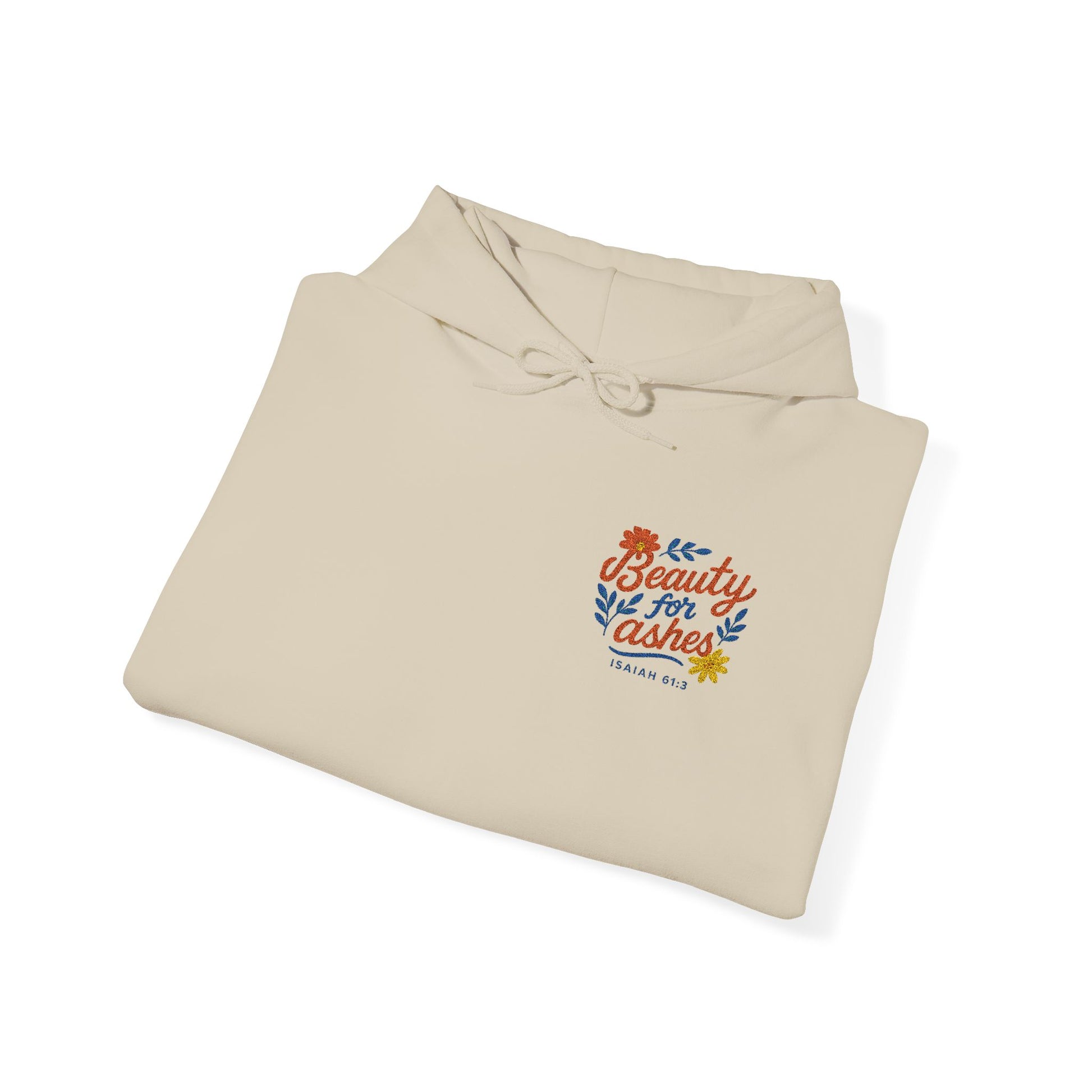 Colorful Floral Embroidered Hoodie - Inspirational Sweatshirt; a colorful reminder of your beauty "Isaiah 61:3". He calls you, "Beautiful one." This cozy hoodie with spacious pockets and adjustable hood is perfect for those who seek comfort and inspiration in their everyday wardrobe. Ideal for those who appreciate floral designs and want a cozy yet stylish piece of clothing to wear during colder seasons or as a thoughtful gift for loved ones during holidays or special occasions.