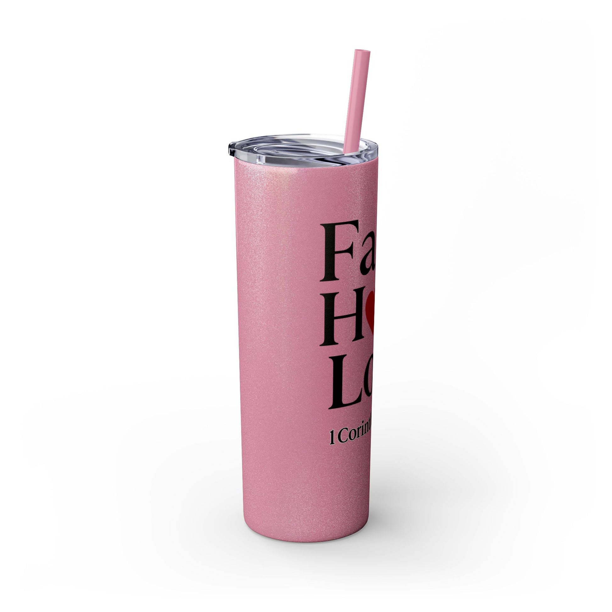 Faith Hope Love Tumbler, 1 Corinthians 13:13, Inspirational Drinkware Gift, 20oz Skinny Cup, The Perfect Motivational Water Bottle