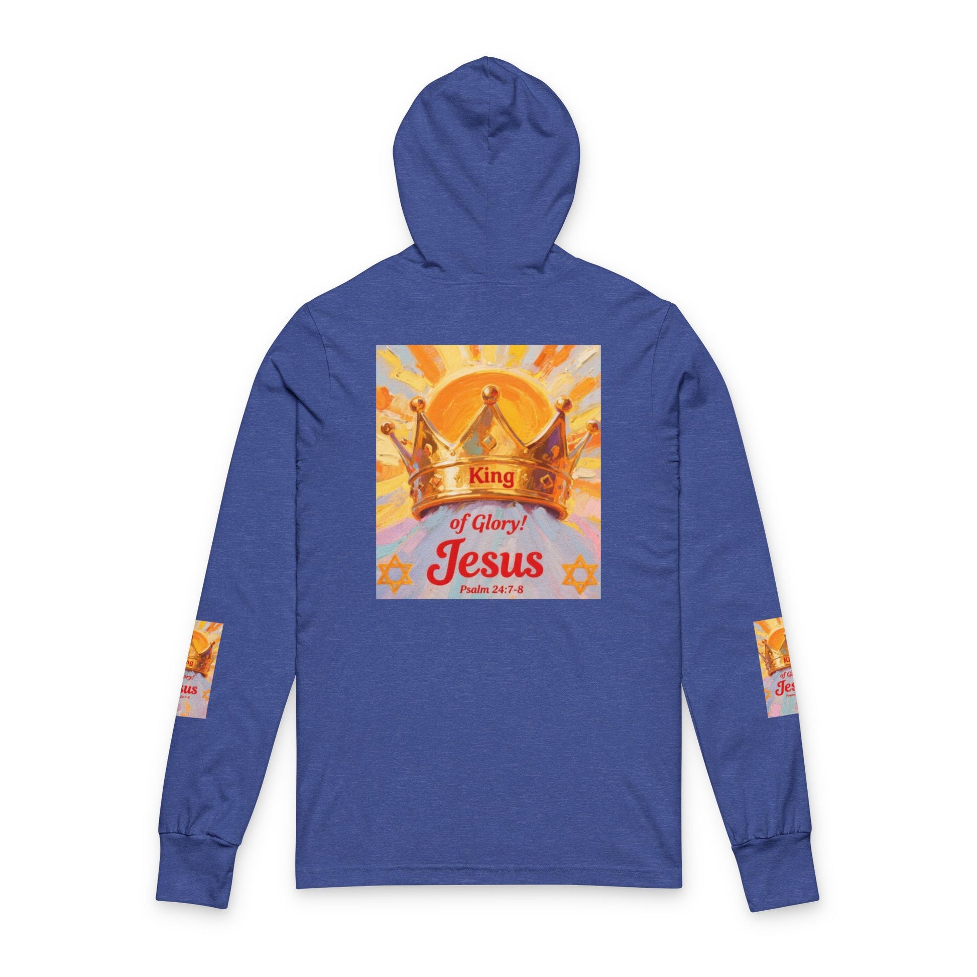 This King of Glory Jesus Hooded Tee featuring Psalm 24:7-8 exudes a spiritual and uplifting vibe, perfect for men and women seeking to express their faith through bold fashion. It offers a regular fit for a comfortable wear experience and is made with 100% airlume combed and ring-spun cotton for total comfort. This Hooded Tee is relevant to Christians looking for a stylish and meaningful piece to wear to church gatherings, worship events, religious holidays, or for everyday casual wear.
