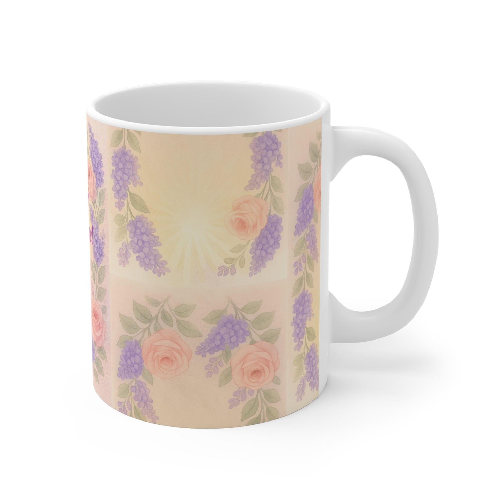 Mug - Floral Inspirational Pink and Purple Flowers, Let Your Light Shine, Matthew 5:16 Gift
