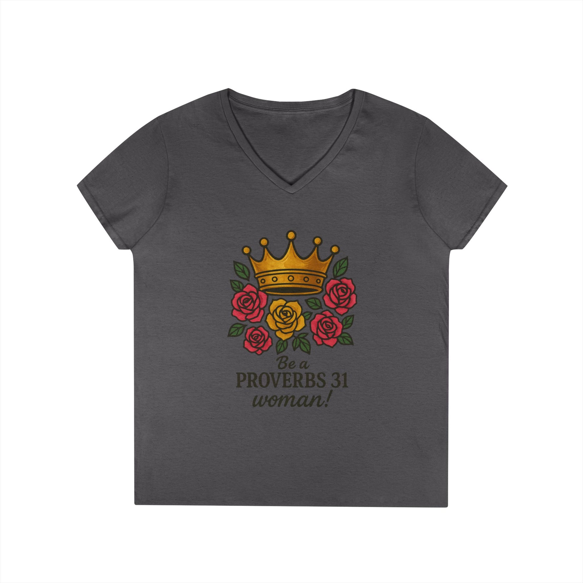 Proverbs 31 Inspirational V-Neck T-Shirt, Motivational Shirt for Women, Empowerment Tee, Gift for Her, Faith-Based Fashion